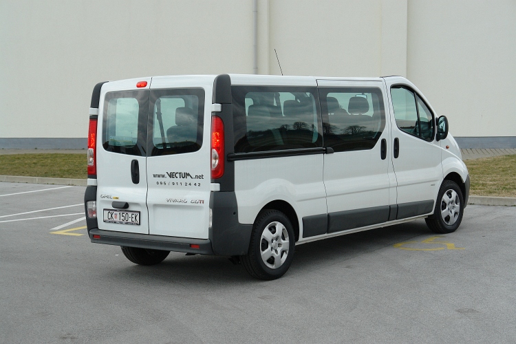 Opel VivaroNa raspolaganju trenutno imamo 5 kombi vozila Opel Vivaro kapaciteta 8 + 1 osoba (vozilo se može voziti sa "B" kategorijom). Sva su vozila novijih godina proizvodnje, opremljena ABS-om, klimom, zračnim jastucima, audio sustavom.